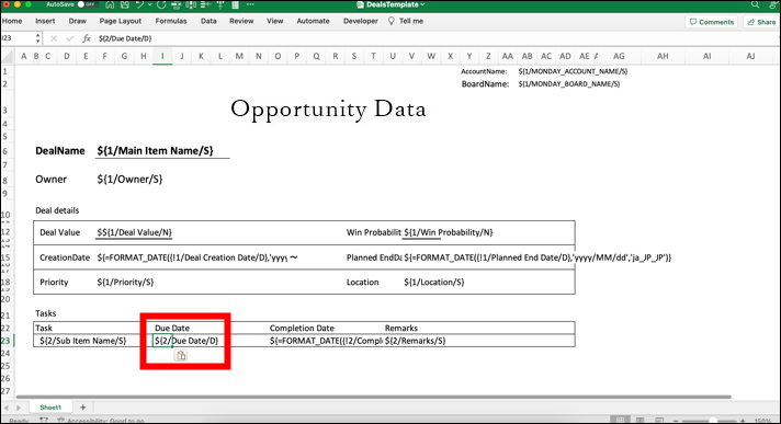 *Here, the Due Date Tag is being pasted into the Excel File.