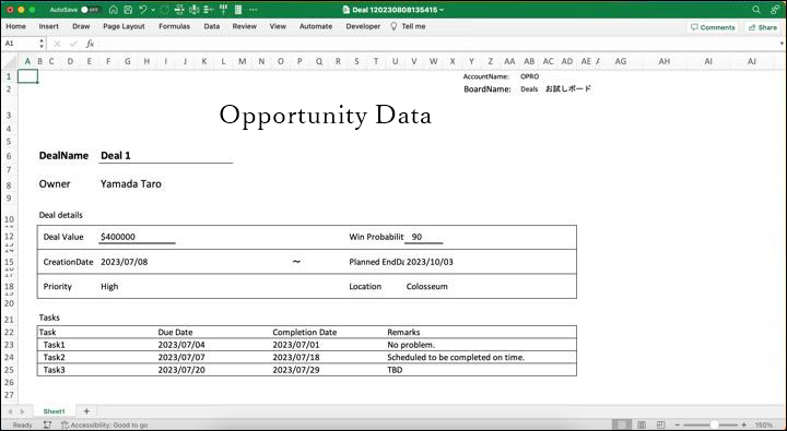 11. By pressing the "CREATE" button in [DOCUMENT OUTPUT], the Items & Sub Items from the Board are exported to the configured Documents Template.