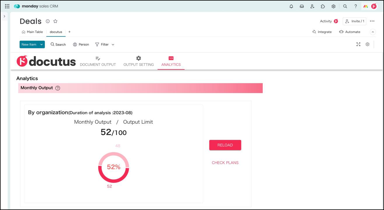 1. From "docutus" ANALYTICS, you can check the number of Documents generated.