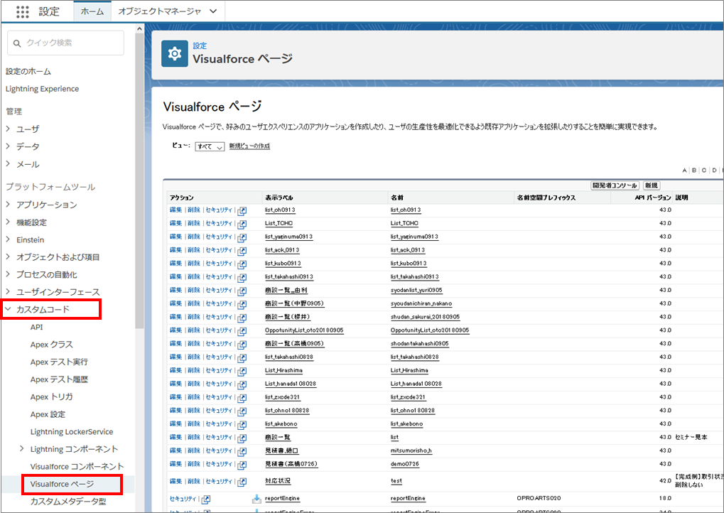 [設定] -> [カスタムコード] -> [Visualforceページ]