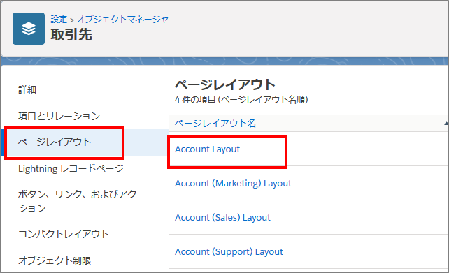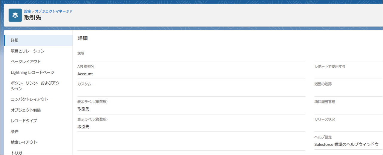 [設定]の[オブジェクトマネージャ]からオブジェクトを選ぶか、オブジェクトのページから「オブジェクトを編集」で画面遷移可能です。