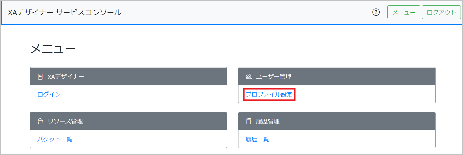 1.変更したいユーザーでXAデザイナー サービスコンソールにログインします。