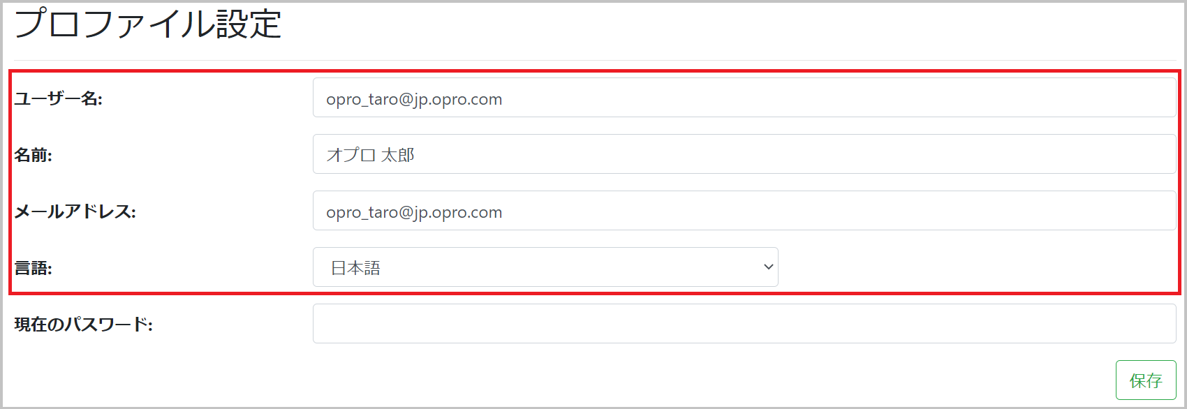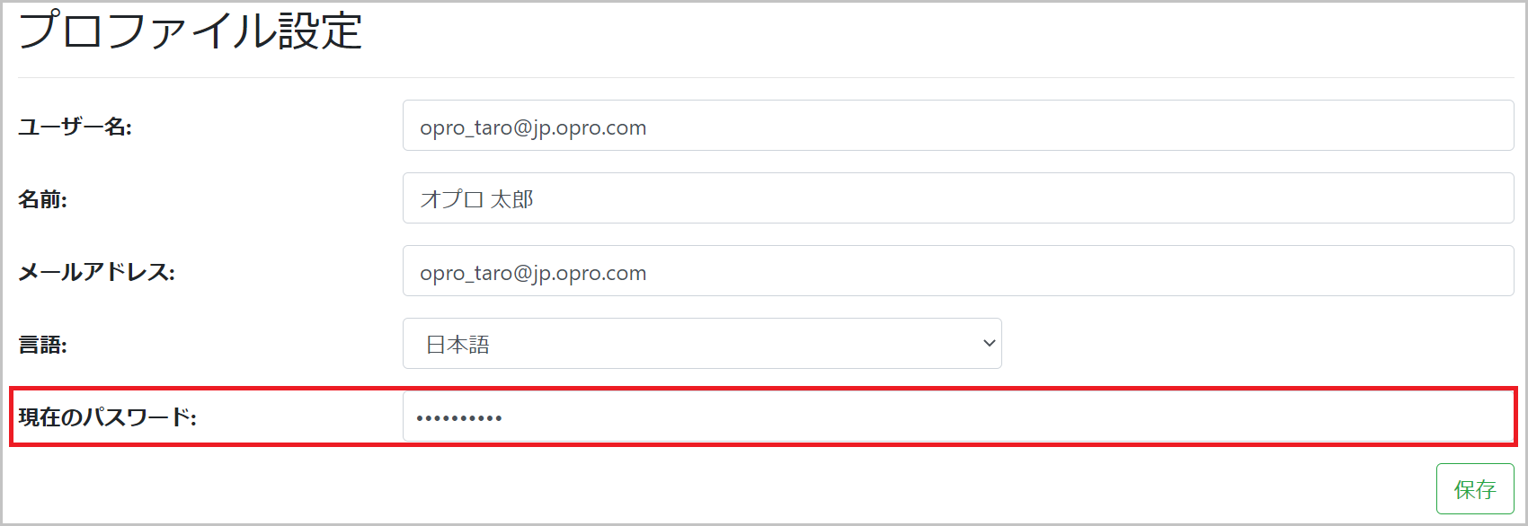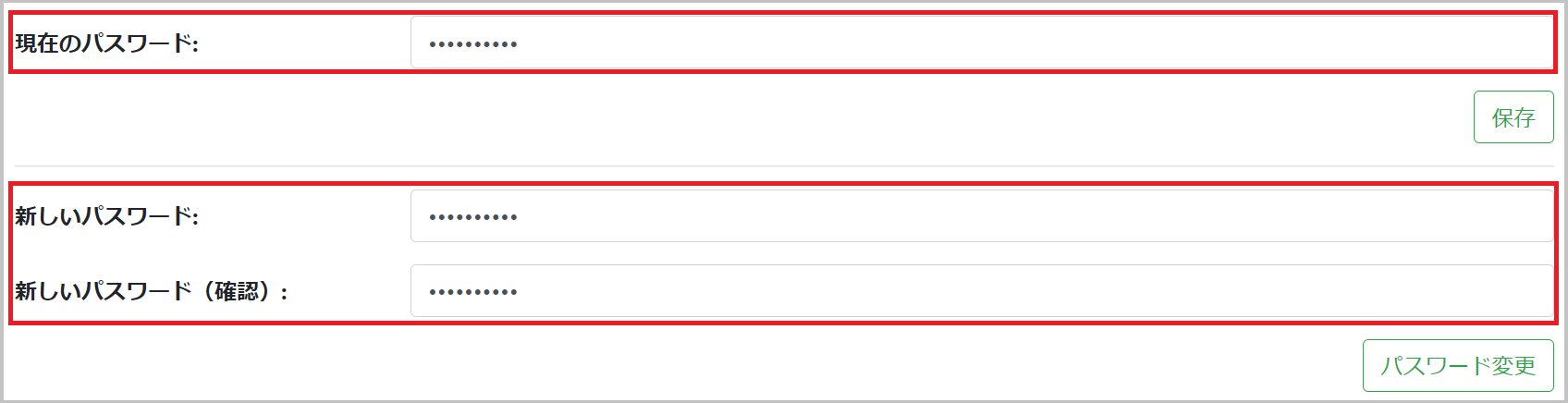 ※現在のパスワードを入力してから[保存]ボタンをクリックしないと変更が反映されませんので、ご注意ください。