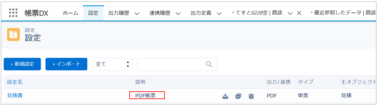 詳しくは、【帳票DX for Salesforce】帳票DXアクションの設定方法を参照してください。