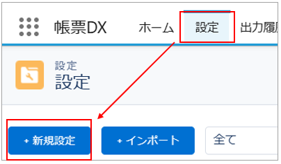「設定」タブをクリックし、「新規設定」ボタンをクリックします。