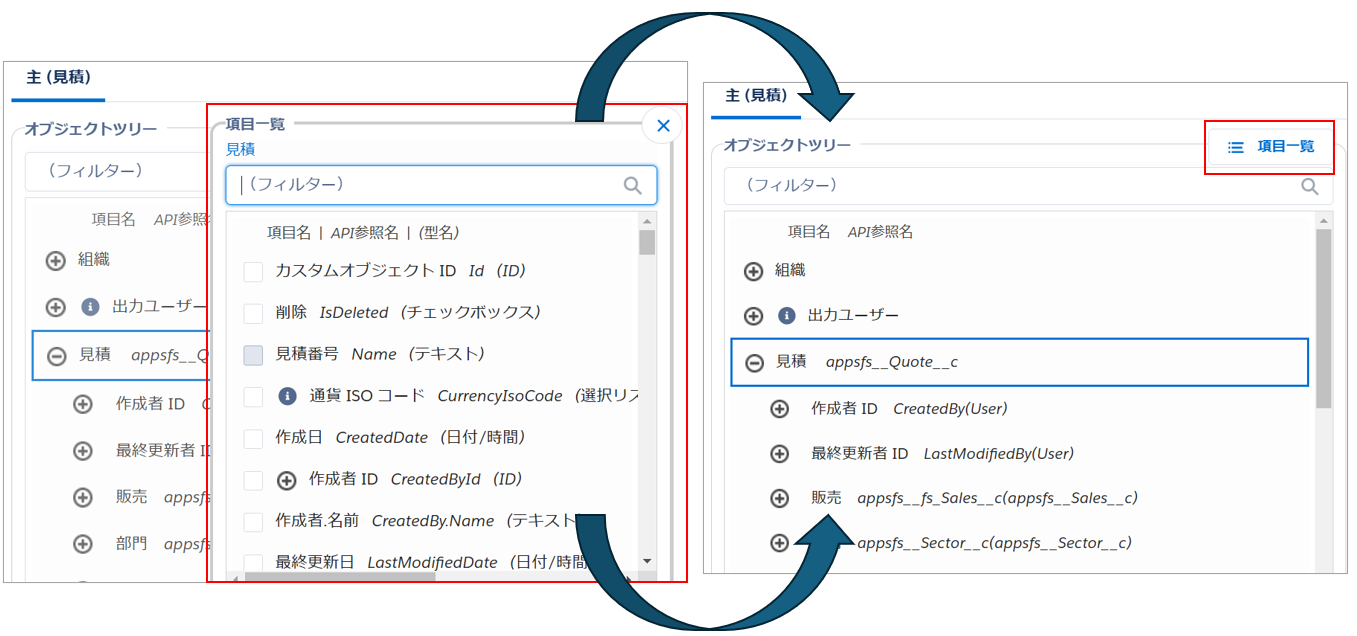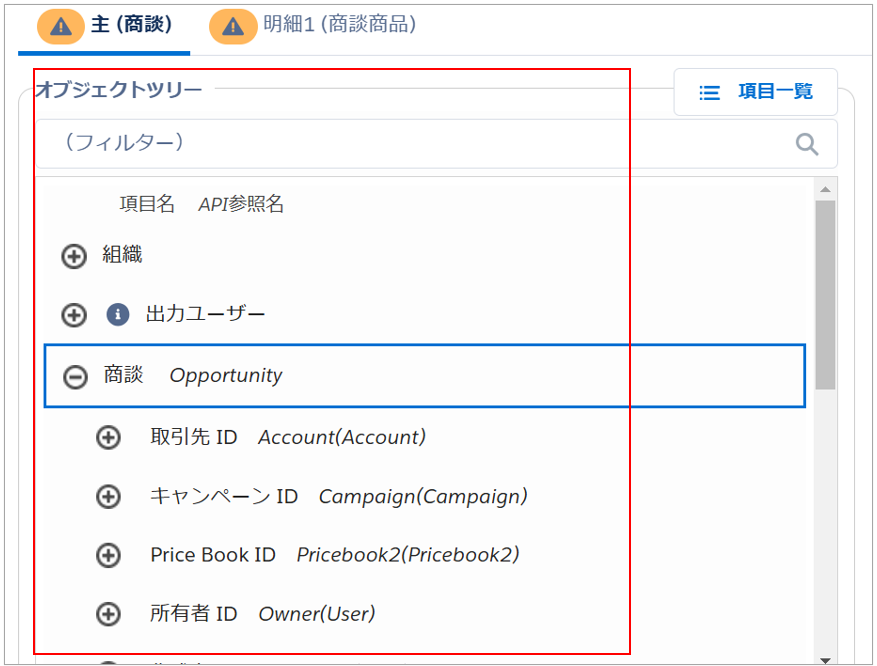 参照項目は「オブジェクトツリー」を利用することで、階層を確認しながら対象オブジェクトを探すことができます。