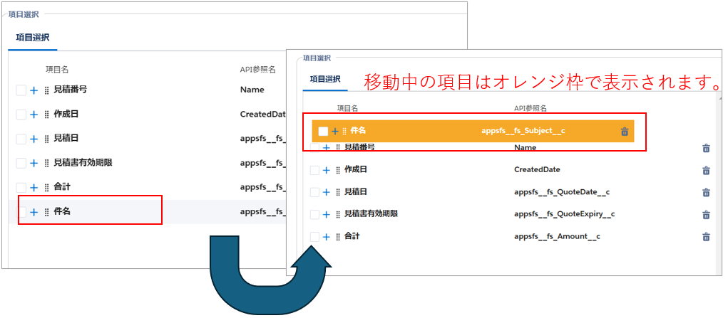 選択した項目をドラッグすることで、並び順を変更することができます。