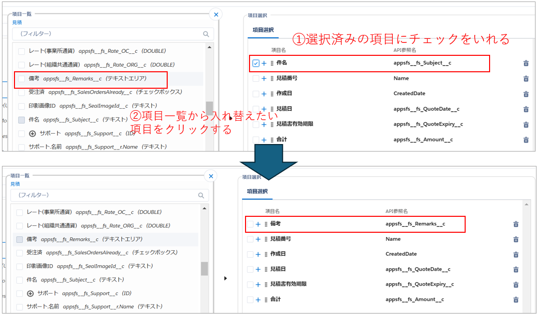 複数の項目がチェックされている場合は、上から順に差し替わります。