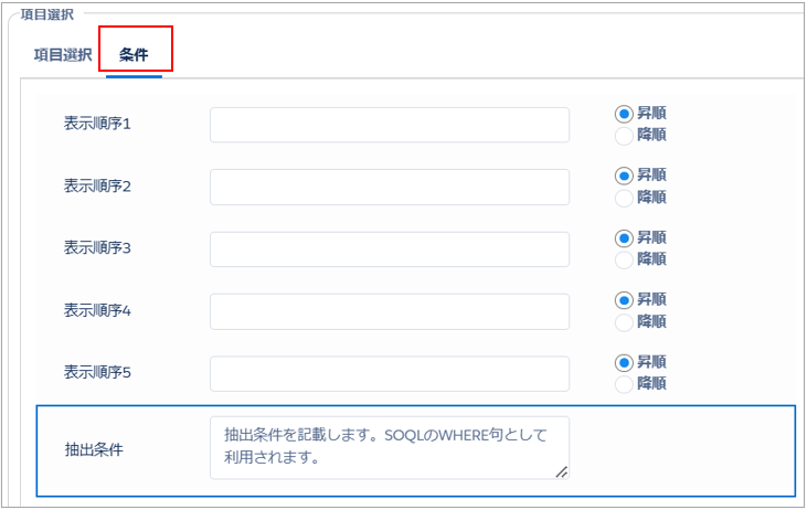 ここでは、明細の表示順と抽出条件を指定することができます。