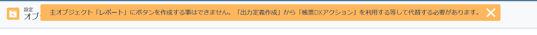 ボタンを生成できないオブジェクトを主オブジェクトに選択した場合、メッセージが表示されます。
