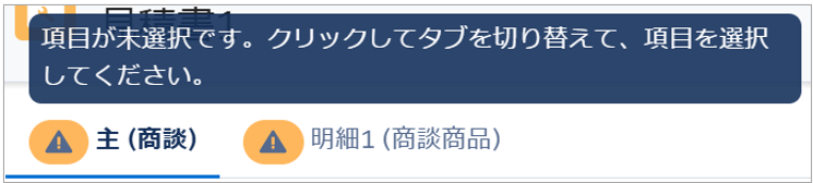 項目が未選択の場合は、タブ横に「⚠️」マークがつきます。