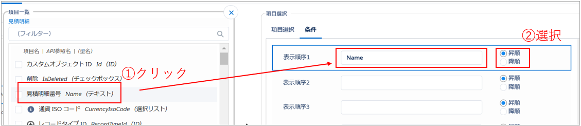 - 昇順/降順を選択します。