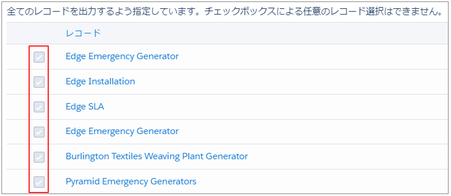 出力画面ではレコード選択はできません。