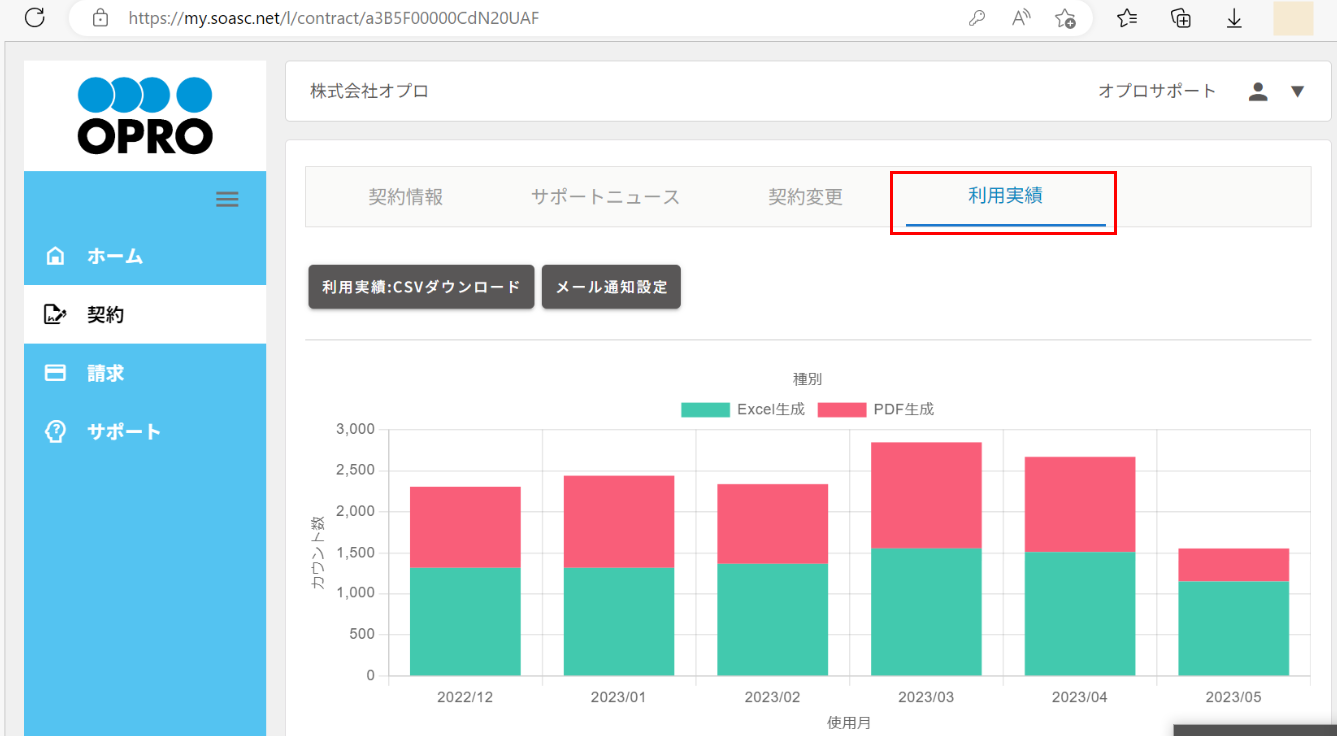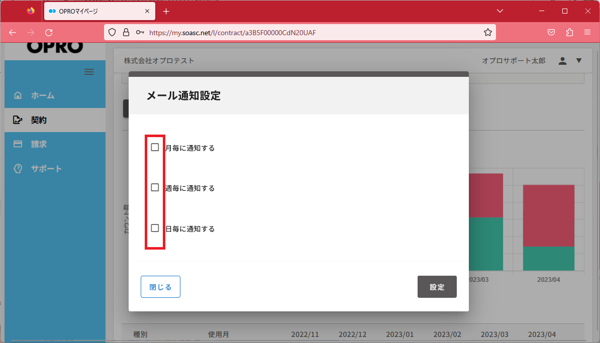 ⑤「メール通知設定」ボタンをクリックすると、日次・週次・月次でカウント数を通知するメールを送信するかどうかを設定できます。