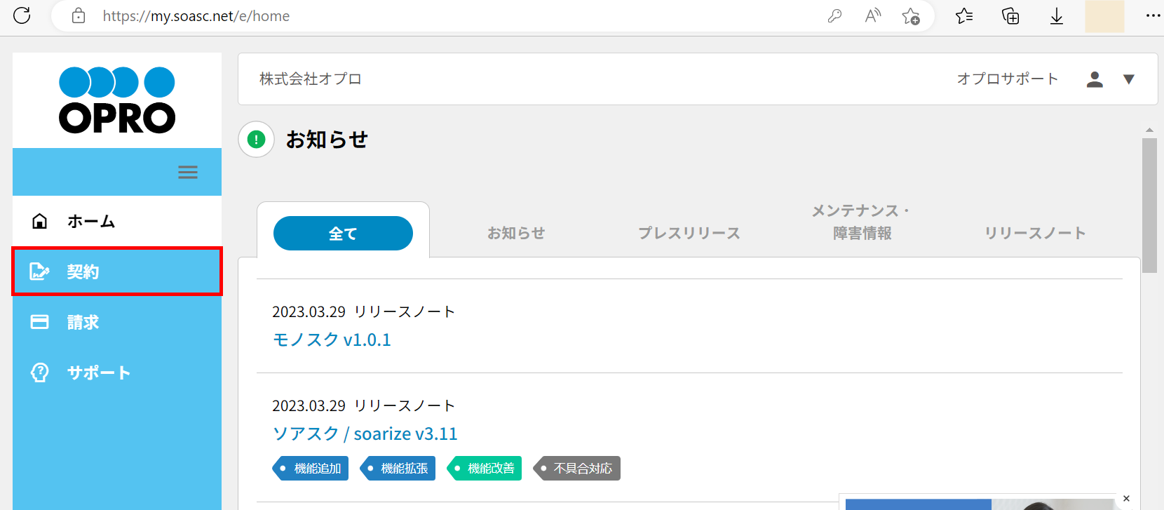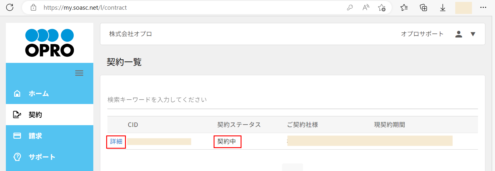 ③契約中ライセンスの「詳細」リンクをクリックします。
