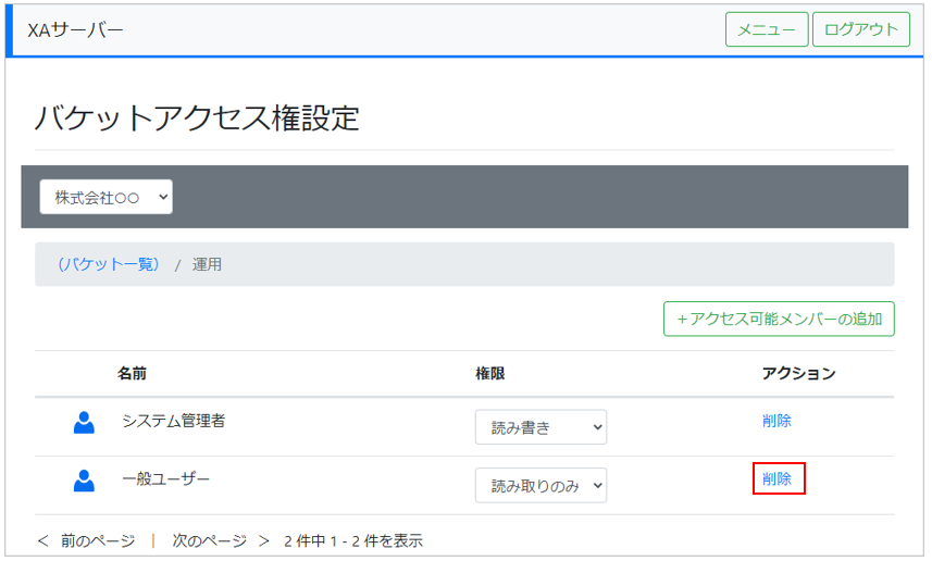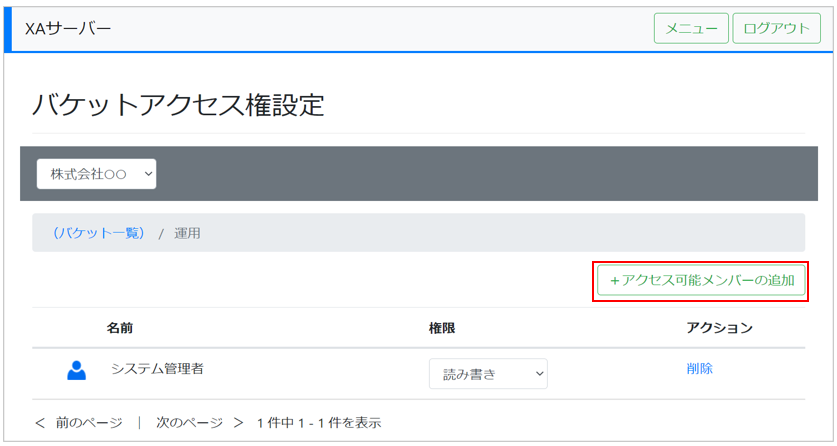 ※本画面ではバケットにアクセス可能なメンバーの追加と、既存メンバーの権限の変更・既存メンバーからの権限の剥奪が行えます。