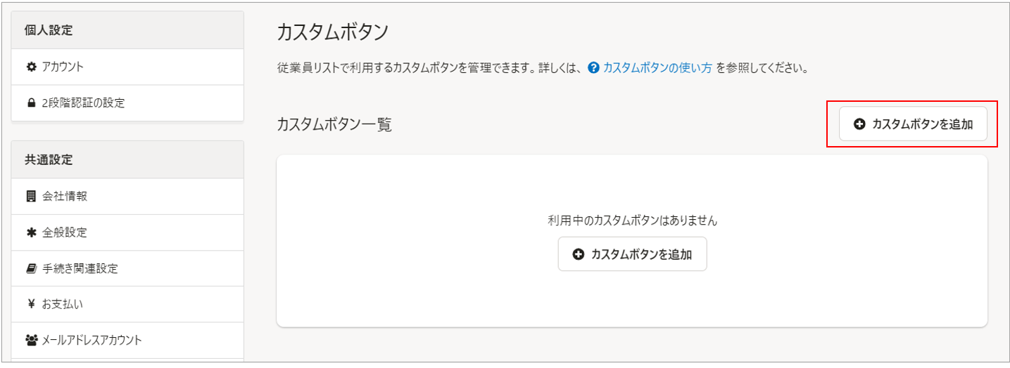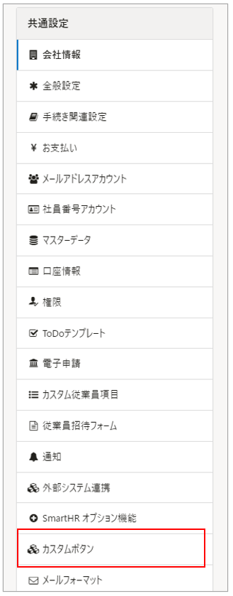 1.SmartHRの「共通設定」より「カスタムボタン」を選択します。