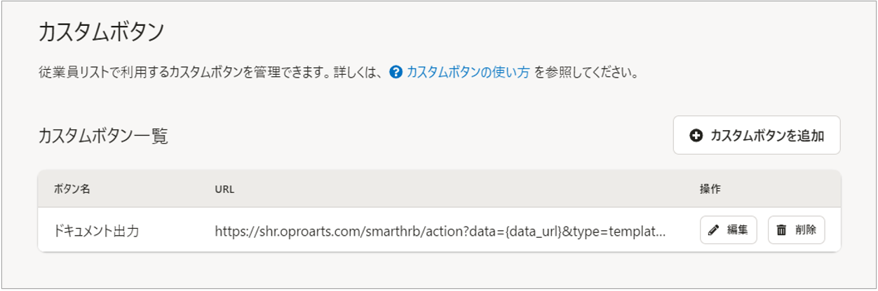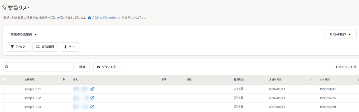 1.SmartHR>「従業員リスト」画面からカスタムボタンをクリックします。