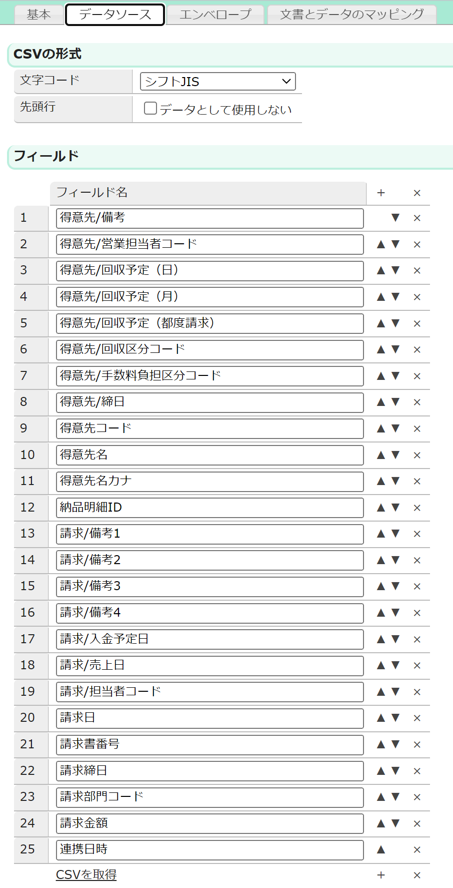 ここでは、マネーフォワード クラウド債権管理の請求データとしてソアスクの納品明細データを送るための設定をします。