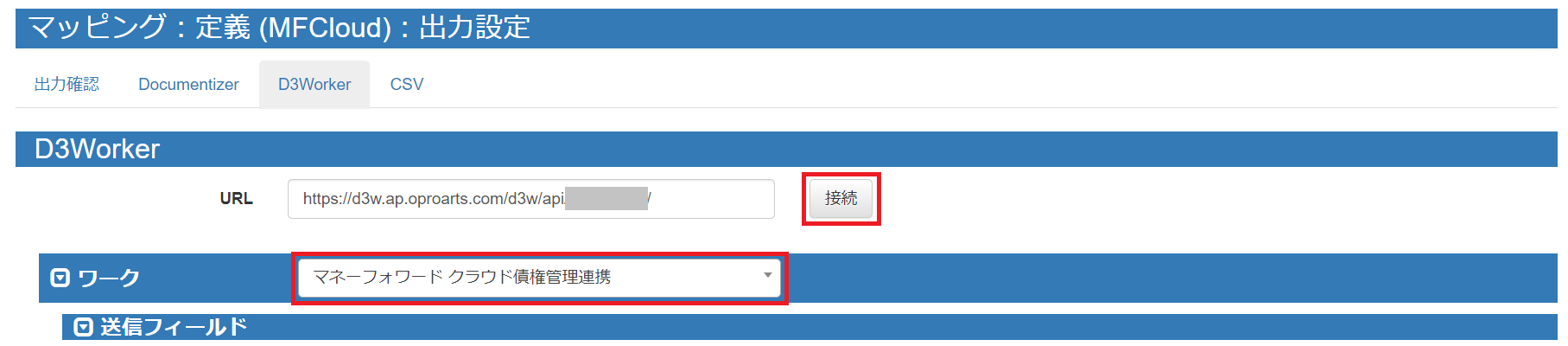 「D3Worker」タブをクリックし、「URL」に以下のURLを入力したら、作成したワークを選択します。