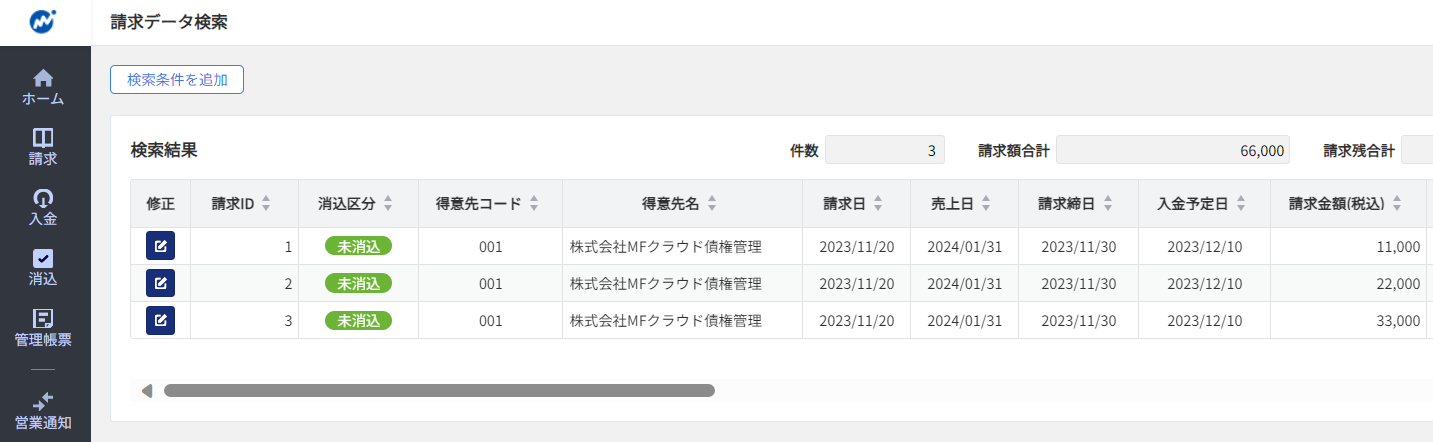 マネーフォワードクラウド債権管理に請求データが登録されました。