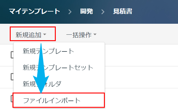 1.「新規追加」をクリックし、「ファイルインポート」を選択します。