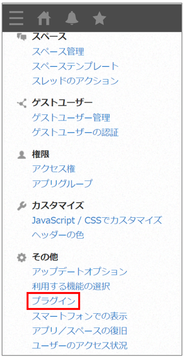 ボタンを設置したいアプリの 設定 > プラグイン > +追加する > プラグインの追加 画面に「OPROARTS Connector for kintone」や「ドキュトーン」が表示されない場合、プラグインの「利用許可の設定」をご確認ください。