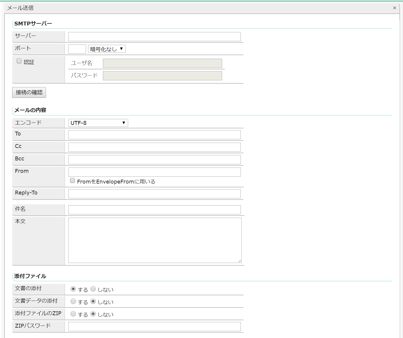 「添付ファイルのZIP」を「する」に指定しない場合、パスワードはかけられません。