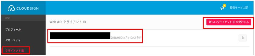 | クライアントID | クラウドサインIDは管理画面から発行してください。 (※1.クライアントIDは以下取得方法をご参照ください。) |