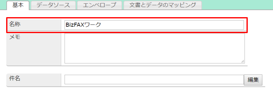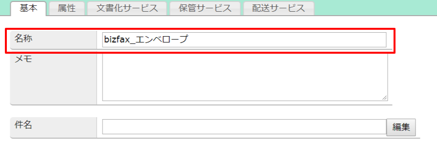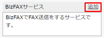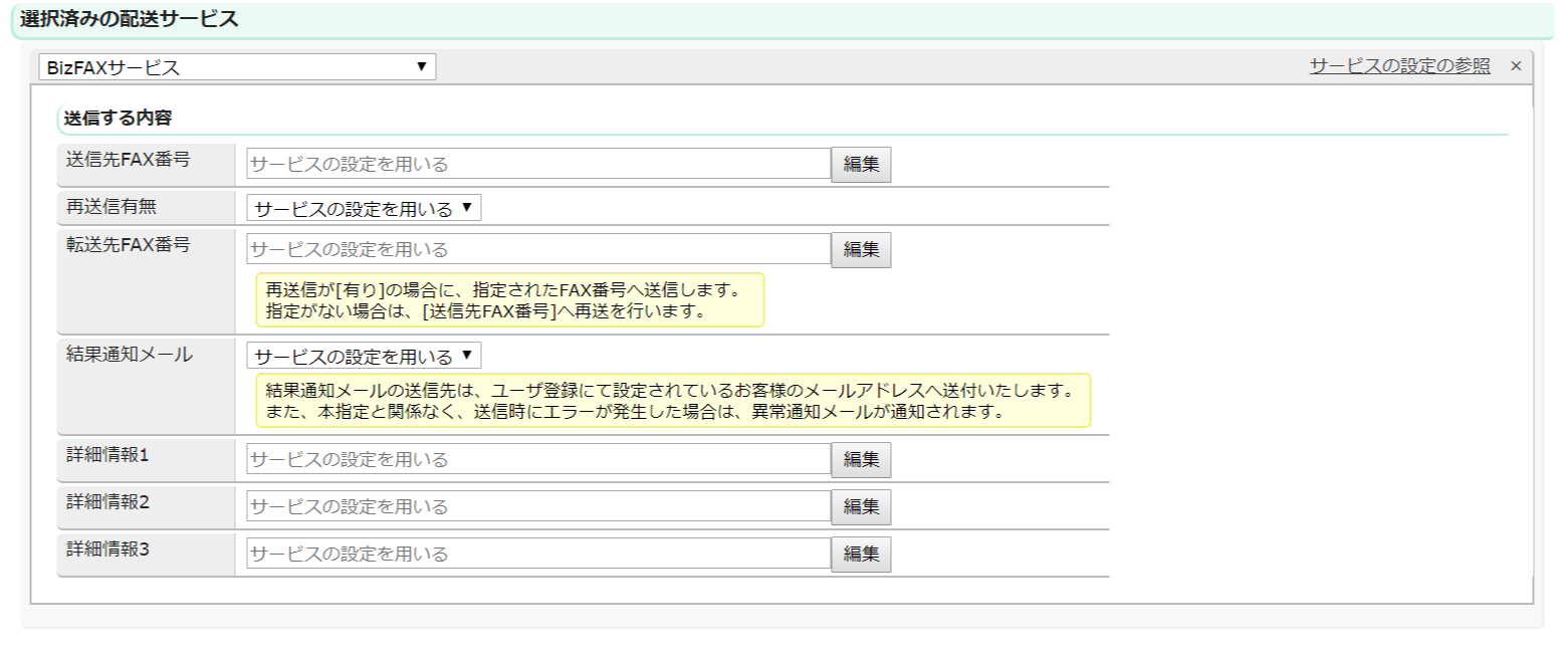 配送サービスタブでは2で作成した「BizFAX」サービスを選択します。
