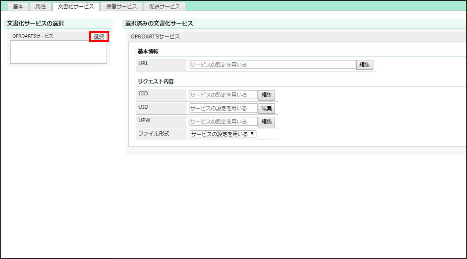 文書化サービスタブでは、1で作成した「OPROARTS」サービスを選択します。