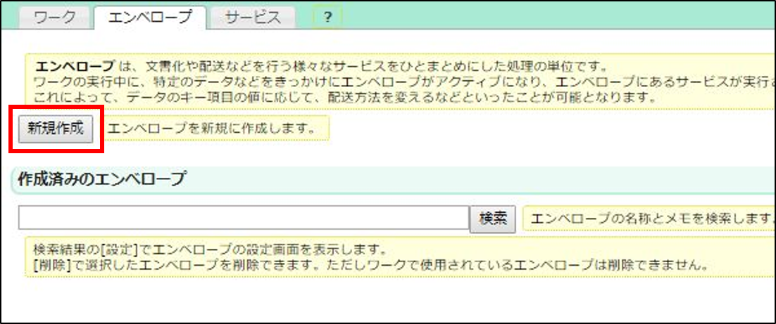 ワークのエンベロープタブの設定概要は「【D3Worker】ワークの「エンベロープ」タブの設定」をご覧ください。