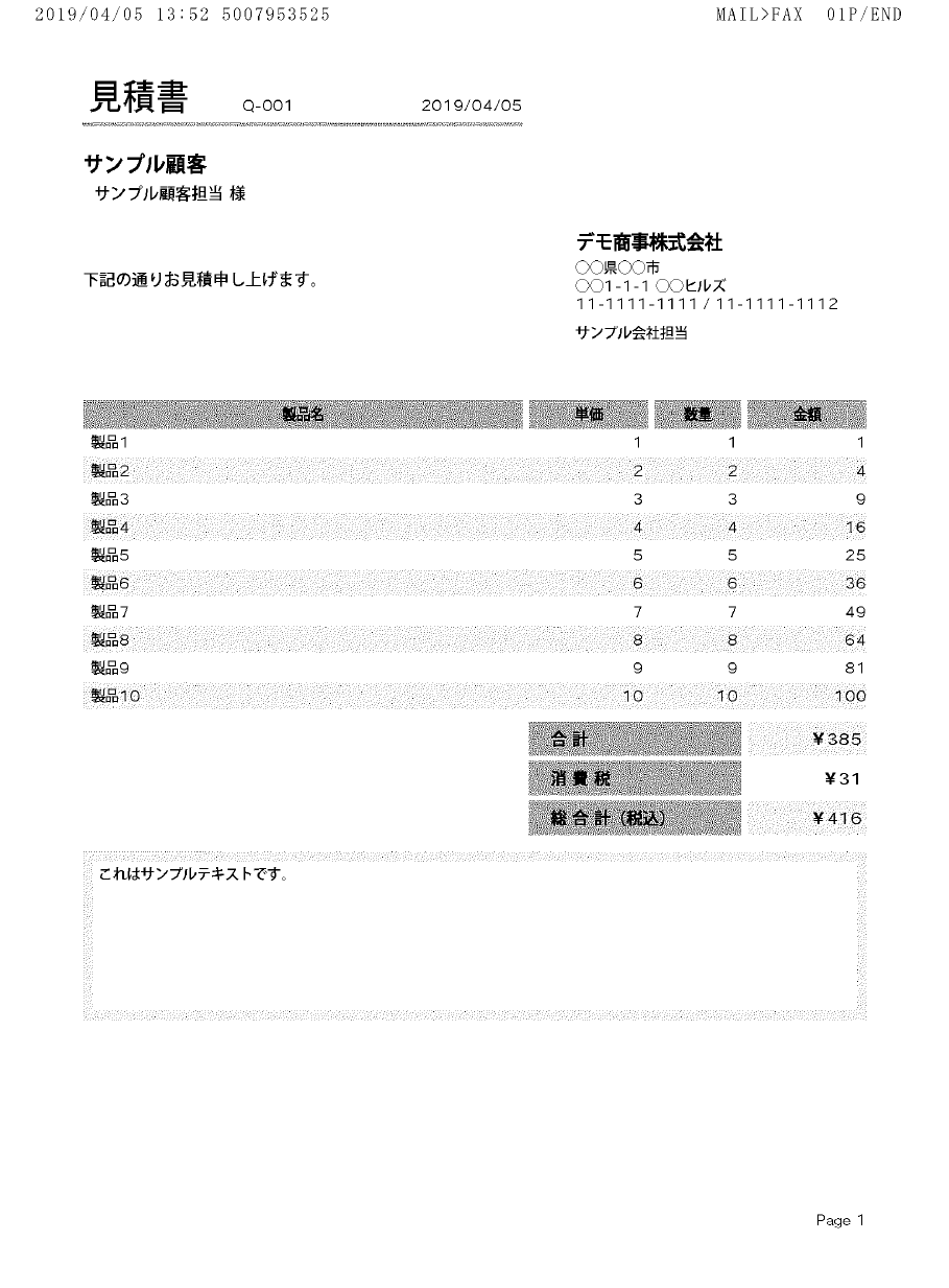 この手順では、簡易的にBizFAXでFAX送信ができることを目的としていますので、サンプルとしてあらかじめ用意されている「見積書3」のサンプルテンプレートをそのまま利用します。