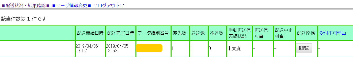BizFAX InternetFAX Web連携サービスにログインして送信履歴を確認すると、送信されたことが確認できます。