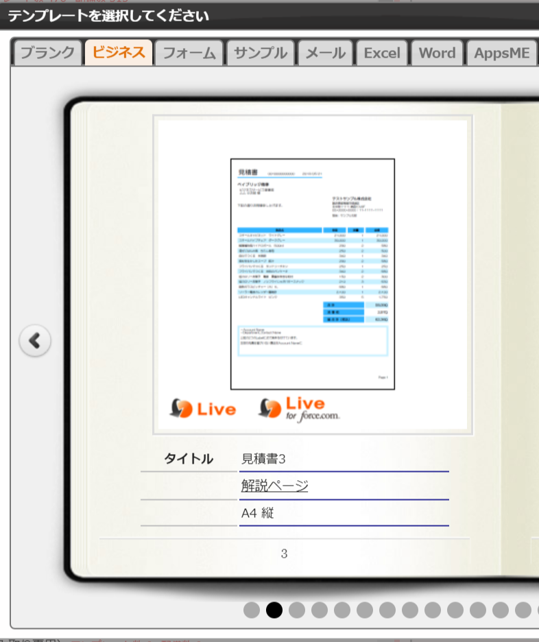 本記事では、「見積書3」のサンプルテンプレートを使います。