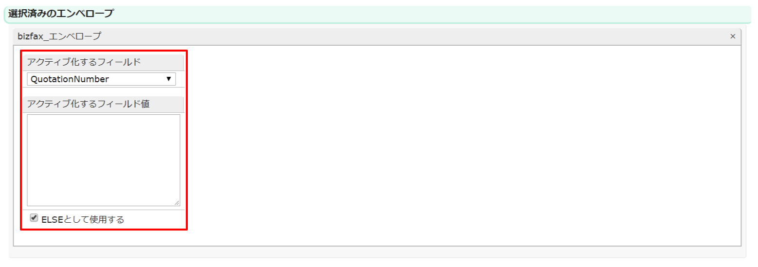 ※「ELSEとして使用する」にチェックが入っている場合、「アクティブ化するフィールド」に設定した項目に何かしら値が入っていると、エンベロープが動作する状態になります。