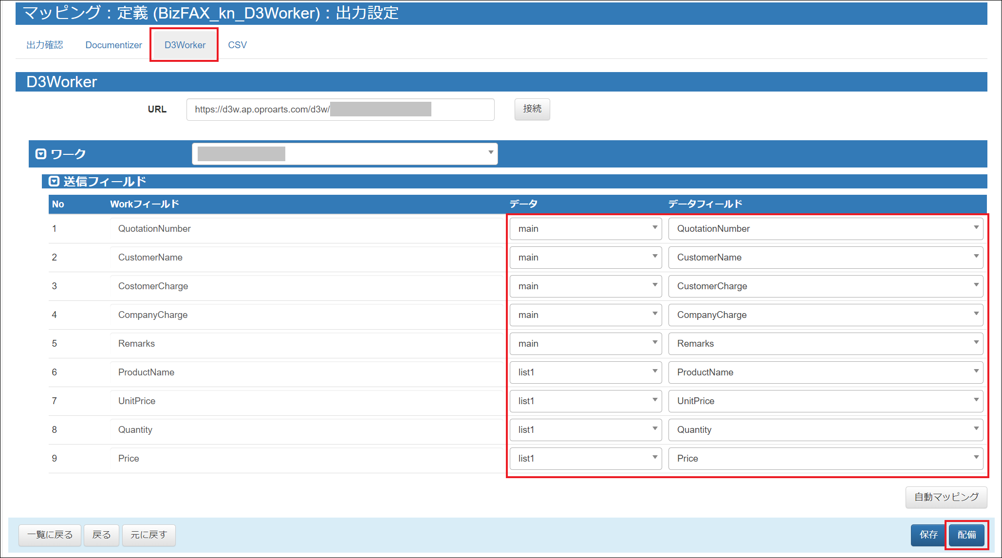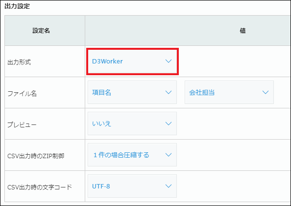 ※必ず出力設定の「操作指示」で「D3Worker」を選んでください。