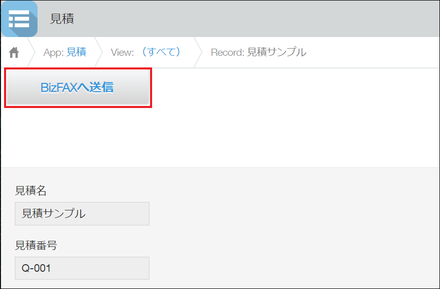 D3WorkerおよびViewFramerの設定が完了した後、kintone上にViewFramerを呼び出すボタンを設置することで、アプリ画面からFAX送信を行うことができるようになります。