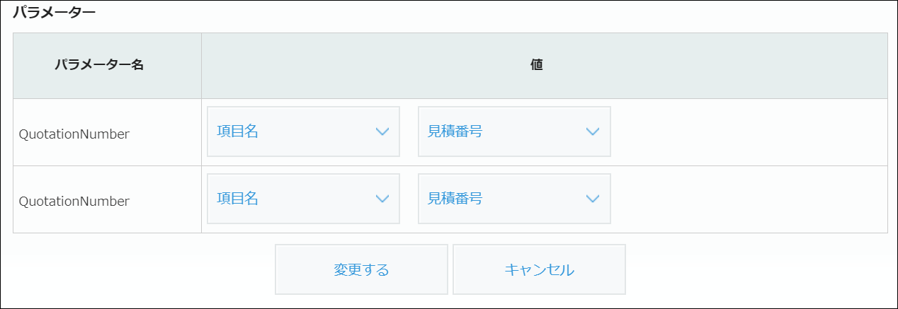「QuotationNumber」パラメータに「見積番号」項目を設定します。