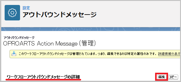 4.[ワークフローアウトバウンドメッセージの詳細]の[編集]をクリックします。