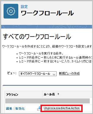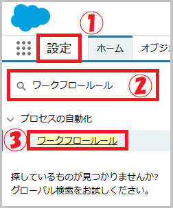 1.[設定]から、[クイック検索]ボックスに「ワークフロールール」と入力し、「ワークフロールール」を選択します。