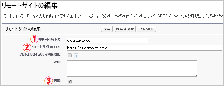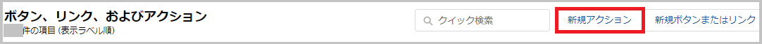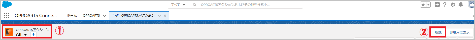 ①「OPROARTSアクション」オブジェクトで、②[新規]ボタンをクリックします。