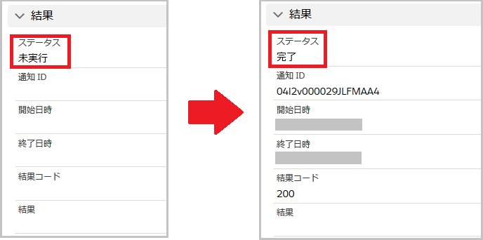 ・編集アクセス権: ステータス、通知ID、結果コード、結果、開始日時、終了日時