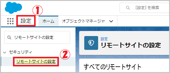 1.[設定]から[オブジェクトマネージャ]を開きます。