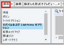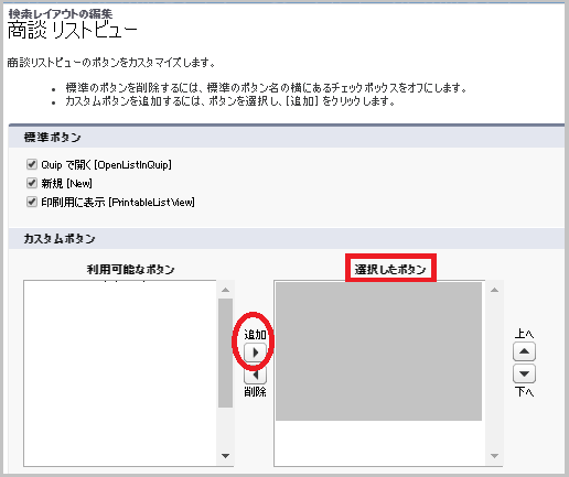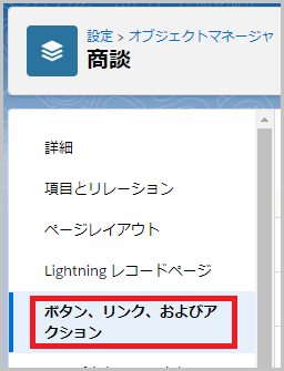 例は「商談」オブジェクトにボタンを置くので「商談」オブジェクトを選択しています。