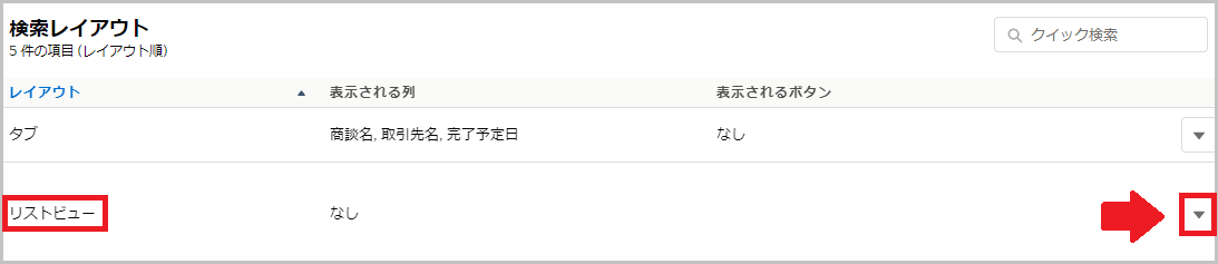 2.[Salesforce Classic の検索レイアウト]を開きます。