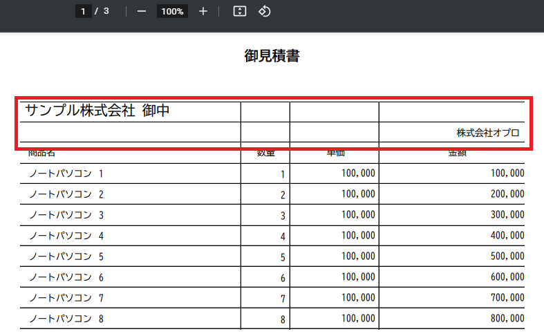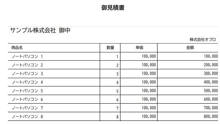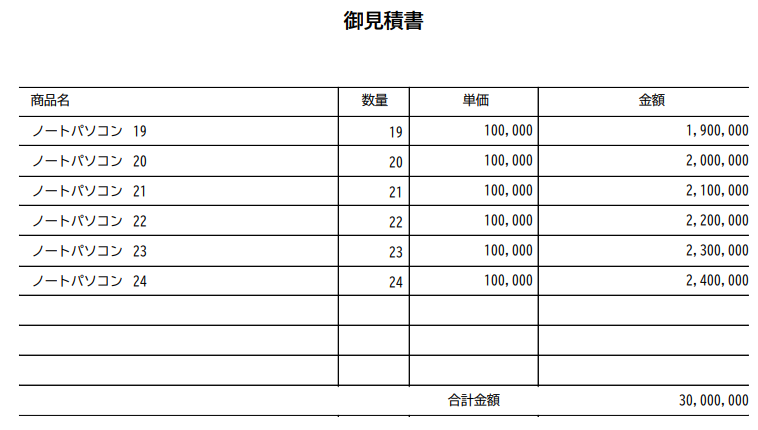 上記までの設定にLabelを追加しマッピングを行い出力した帳票が下記のものになります。