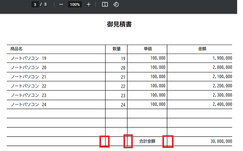• 3ページ目にレポートフッダに不要な罫線が表示される。↓↓↓