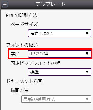 テンプレートの字形を「OPROARTS設定に従う」に設定しても「JIS2004」に設定した場合と同様になります。