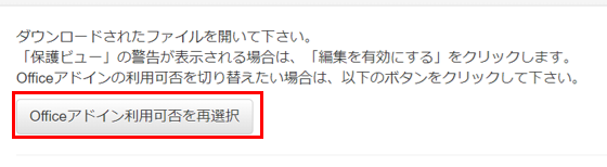 ※白紙から新規作成の場合は「Officeアドインが表示されない場合」もしくは「Officeアドイン利用可否を再選択」をクリックし、以下の画面で[いいえ]ボタンをクリックします。ここでの選択と、⓪の選択は対応しています。